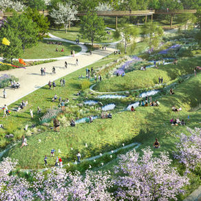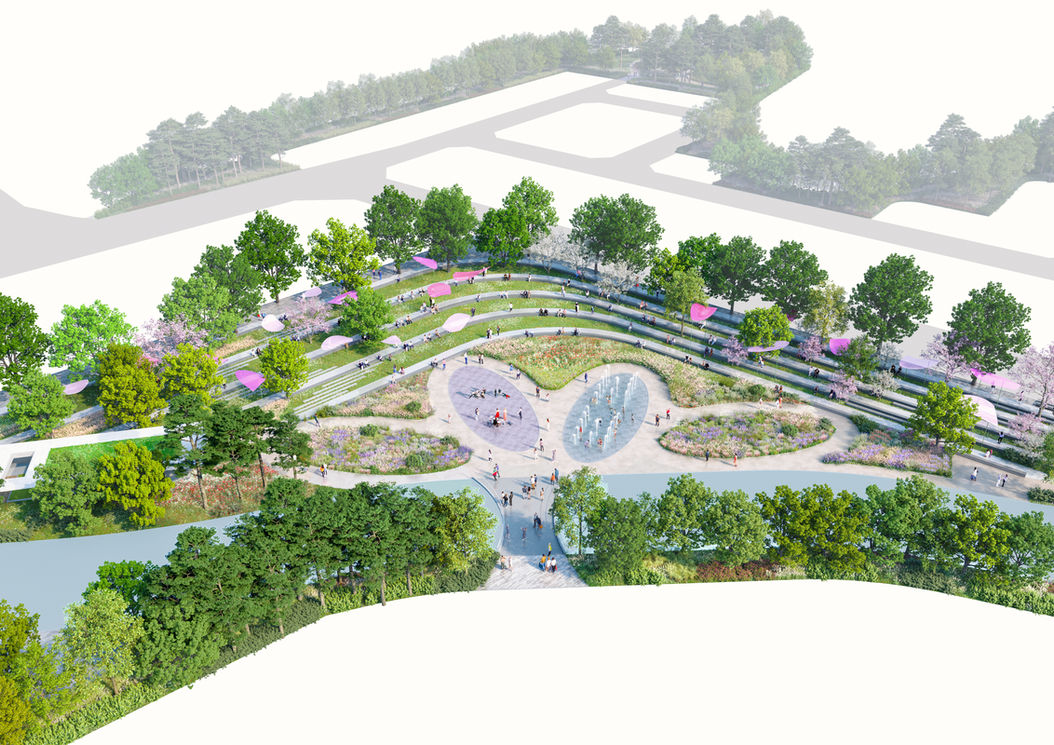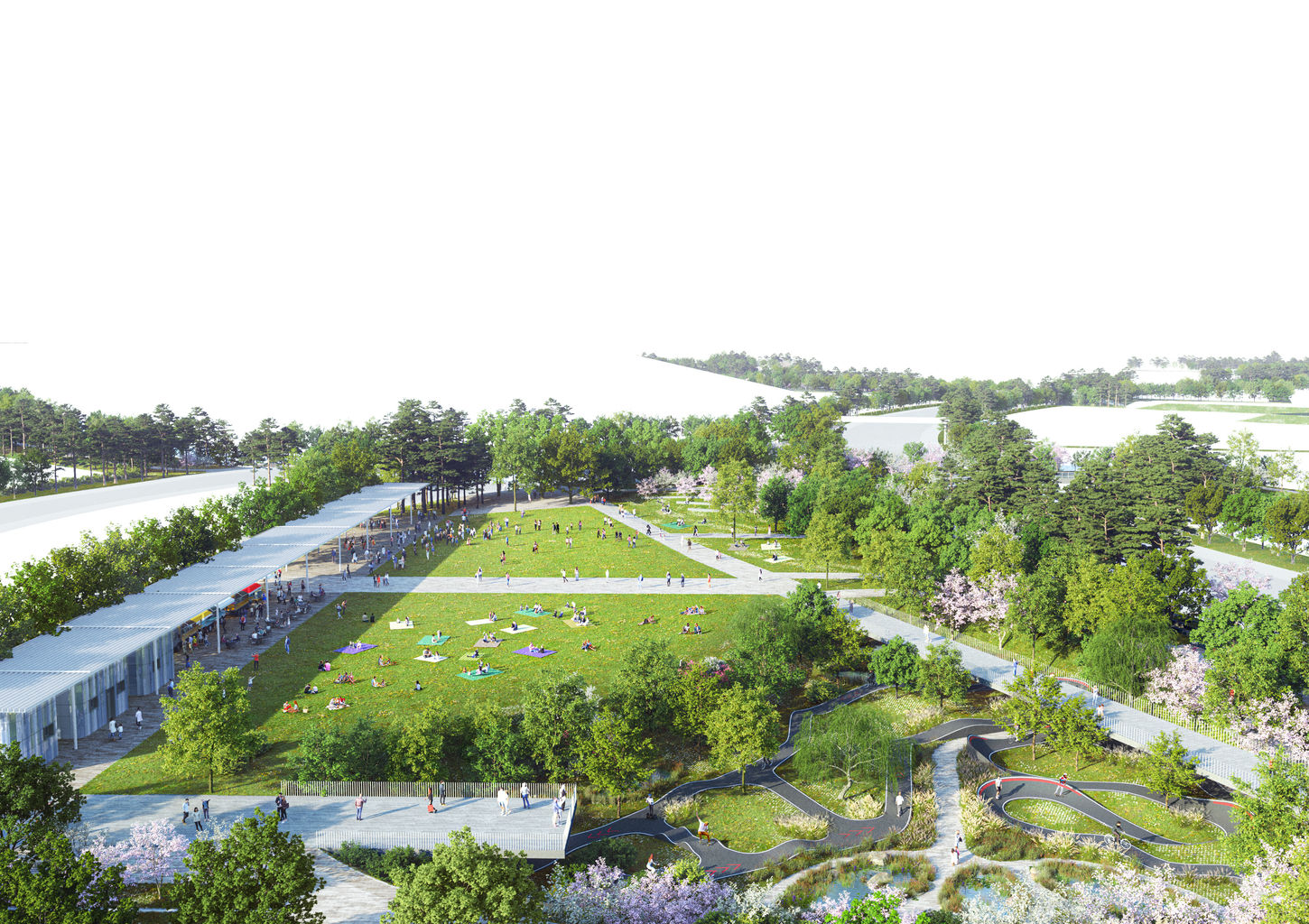 디자인 디렉터로서 설계에 기준으로 한 개념은 옛 지명인 ‘벌골(伐谷)’의 지형적 맥락을 복원하는 것입니다. 벌(벌판)과 골(골짜기)이 어우러진 지형이 삶에 미쳐온 영향을 감베들, 건너말 같은 지명 속에서도 찾아볼 수 있습니다. 현대적인 주거도시의 맥락에서 이러한 지형 경관은 일상과 문화에 깊은 영향을 미치는 인문학적 정체성이 될 수 있습니다. 벌골 지형은 유기적이고 입체적으로 연결되는 도시 구조와 경험으로 재해석하고, 단절되었던 도시와 산림의 흐름은 ‘ONE LINK’ 가이드라인을 통해 하나로 통합했습니다. 벌과 골의 서사가 담긴 공간은 주민들에게 단순한 통로가 아닌, 일상이 한 편의 시(詩)가 되는 사색의 장소를 제공합니다. 이 계획은 벌골을 포함해 문학, 복사꽃처럼 이 지역의 고유한 기억들에서 출발한 시각적·언어적 모티브를 담고 있습니다. 이러한 모티브는 삶과 장소를 긴밀히 이어주고, 풍성한 일상을 만드는 도시적 정체성이 될 것입니다.